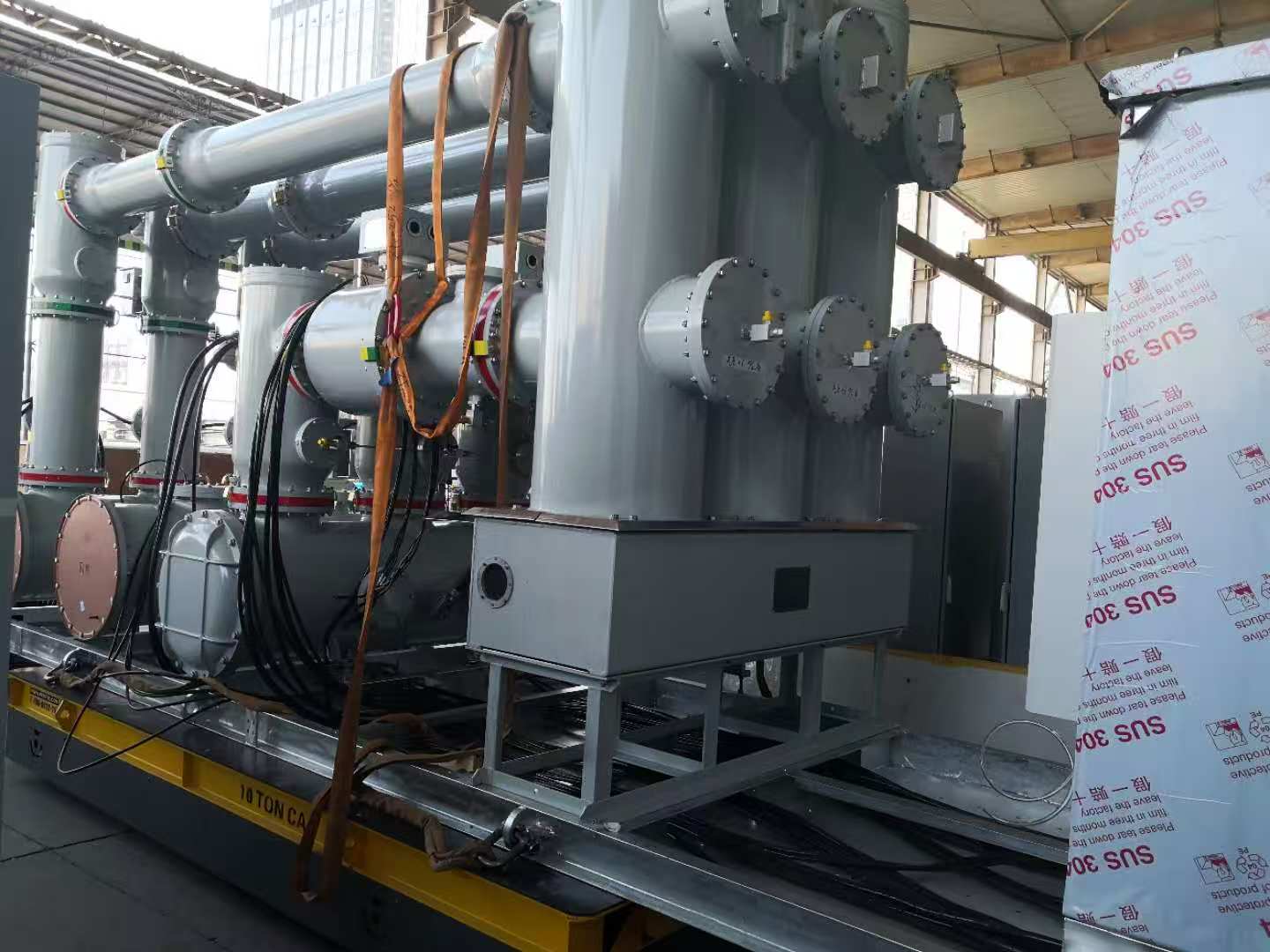 客戶是一家專業(yè)生產(chǎn)高壓開關以及電力設備的國企,生產(chǎn)的各種型號高壓開關,特高壓電力設備,產(chǎn)品主要用于國內(nèi)外高壓電力輸送,我們的無軌搬運車主要為客戶解決了組裝調(diào)試轉(zhuǎn)運工序。 此無軌車轉(zhuǎn)運的是一臺電力設備,由于該電力設備組裝完畢后重量較重,所以客戶從部件組裝到成品在到通電調(diào)試全部在無軌車上完成,完成調(diào)試驗收后,最后轉(zhuǎn)運倉庫包裝代發(fā)貨狀態(tài)。